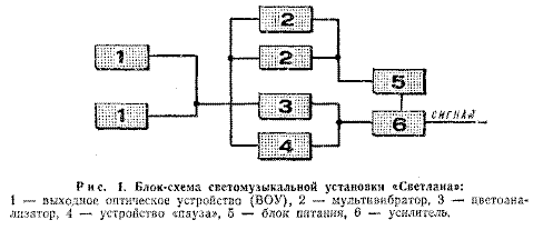 Светомузыкальная установка "Светлана" состоит из шести функциональных